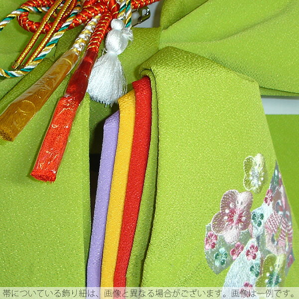 七五三 結び帯「ヒワ色 リボンと桜」5歳向け 二部式帯 付け帯 日本製 No.303リボン桜・ヒワ(中)【メール便不可】