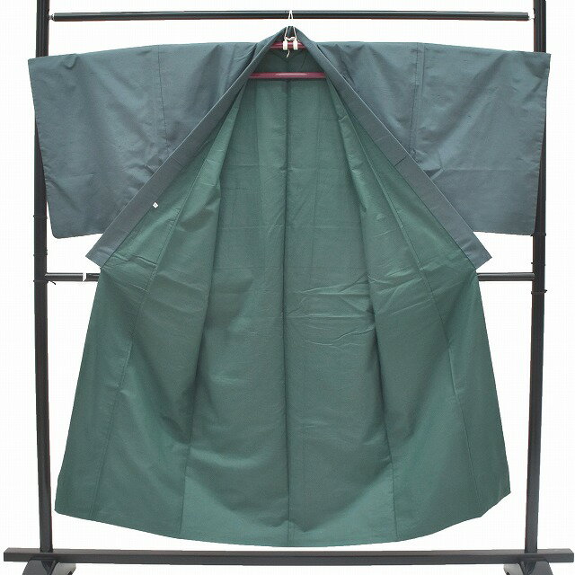 説明 【着物・羽織】 深緑色地の男物の牛首紬のアンサンブルです。